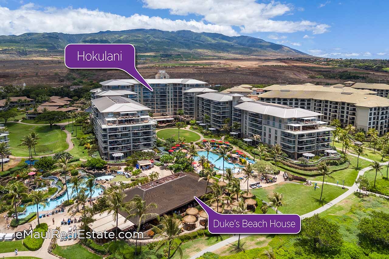 The Hokulani tower was the first of the two towers to be completed. It is designed in a U-shaped configuration with with an inner courtyard for odd number units and perimeter views for even numbers. This structure house the main lobby and the Aina Market, it carries high-end products, pastries, coffees, beverages, and more. Note that his building is sometimes considered to be "busier" because it is the closest to Duke's and anchored by the largest pool in the complex.