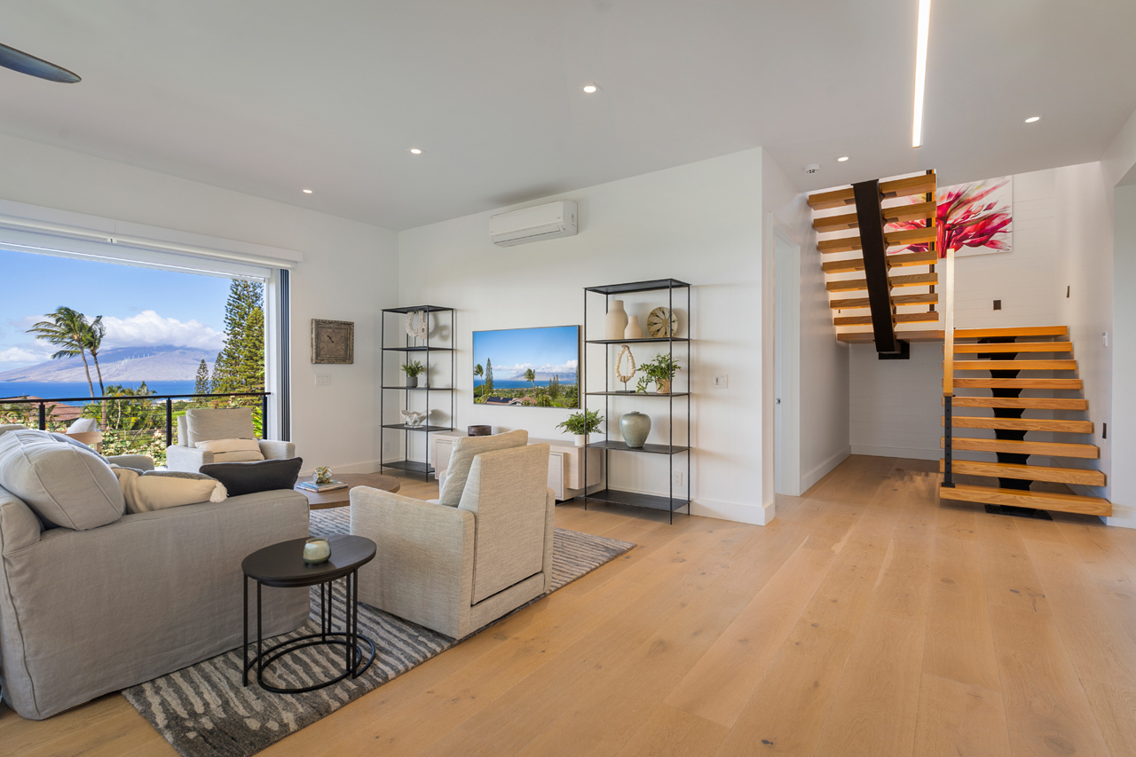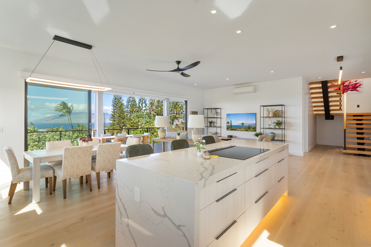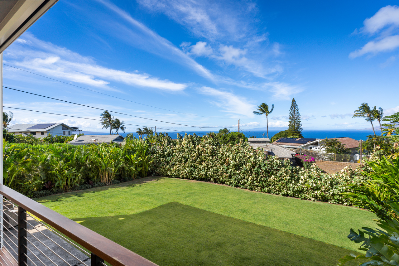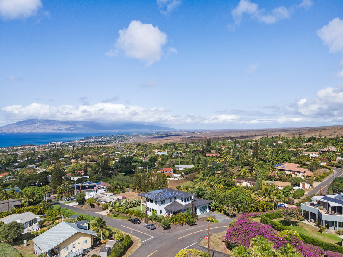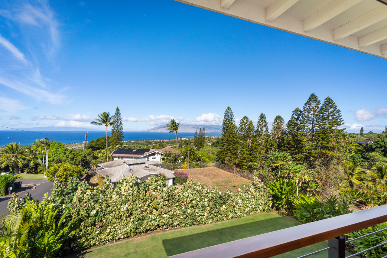 Contemporary design meets classic Hawaiian beauty in this stunning Maui Meadows estate. Step into a new luxury home with furnishings expertly styled by a professional interior designer and sweeping ocean views. A newly constructed stacked lava rock wall is enhanced with established tropical landscaping around a level grassy yard. Additional improvements include a 35-panel photovoltaic system with 2 PWR cell Generac batteries and electric car charger, remote sunshades, alarm system, whole house water softener, and reverse osmosis system. No detail has been overlooked. The detached Ohana was built in 1980. It has an entrance off of Kaleo Place maintaining a strong sense of privacy between the two homes.