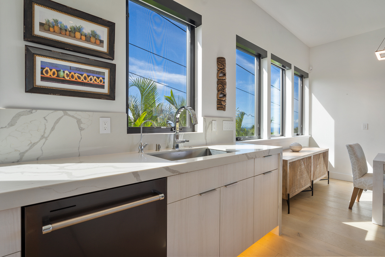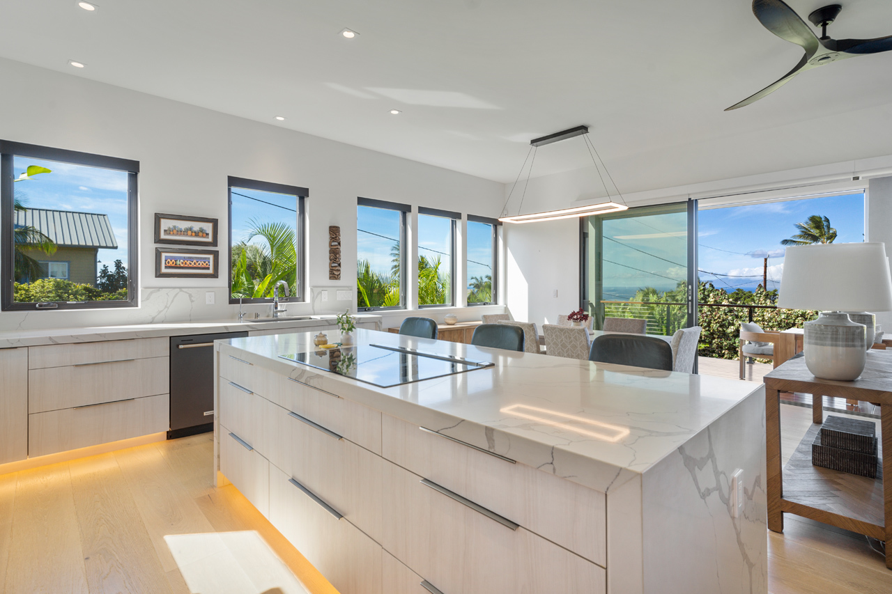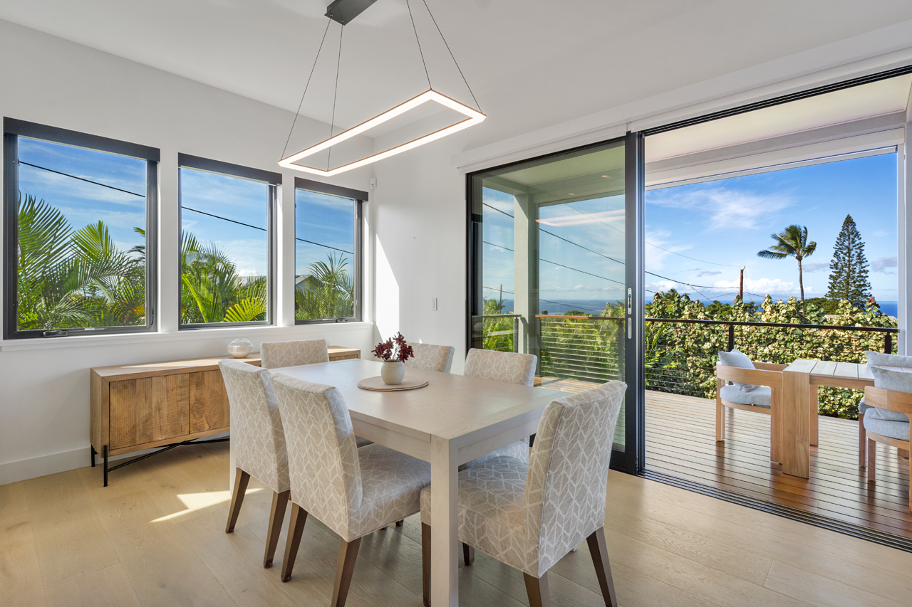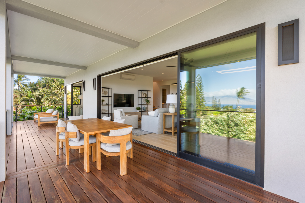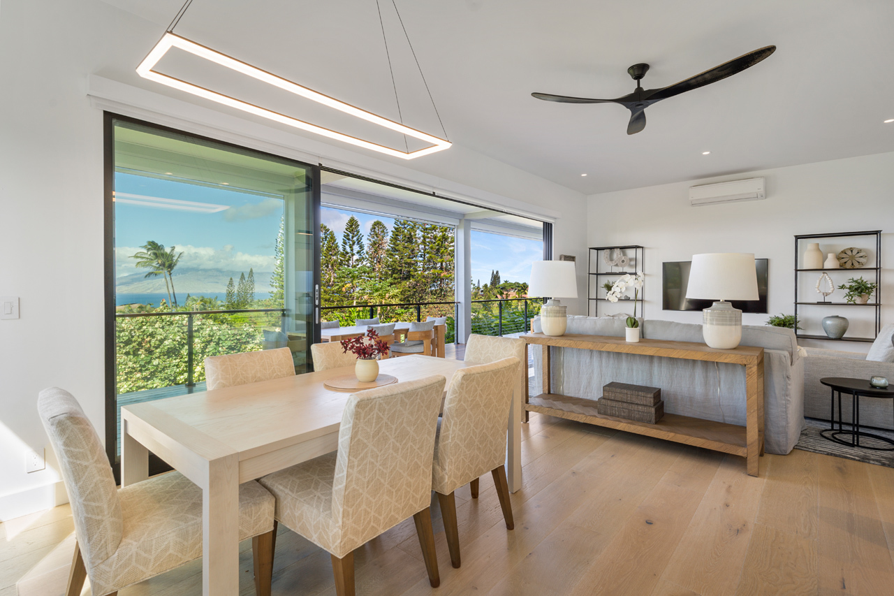 Contemporary design meets classic Hawaiian beauty in this stunning Maui Meadows estate. Step into a new luxury home with furnishings expertly styled by a professional interior designer and sweeping ocean views. A newly constructed stacked lava rock wall is enhanced with established tropical landscaping around a level grassy yard. Additional improvements include a 35-panel photovoltaic system with 2 PWR cell Generac batteries and electric car charger, remote sunshades, alarm system, whole house water softener, and reverse osmosis system. No detail has been overlooked. The detached Ohana was built in 1980. It has an entrance off of Kaleo Place maintaining a strong sense of privacy between the two homes.